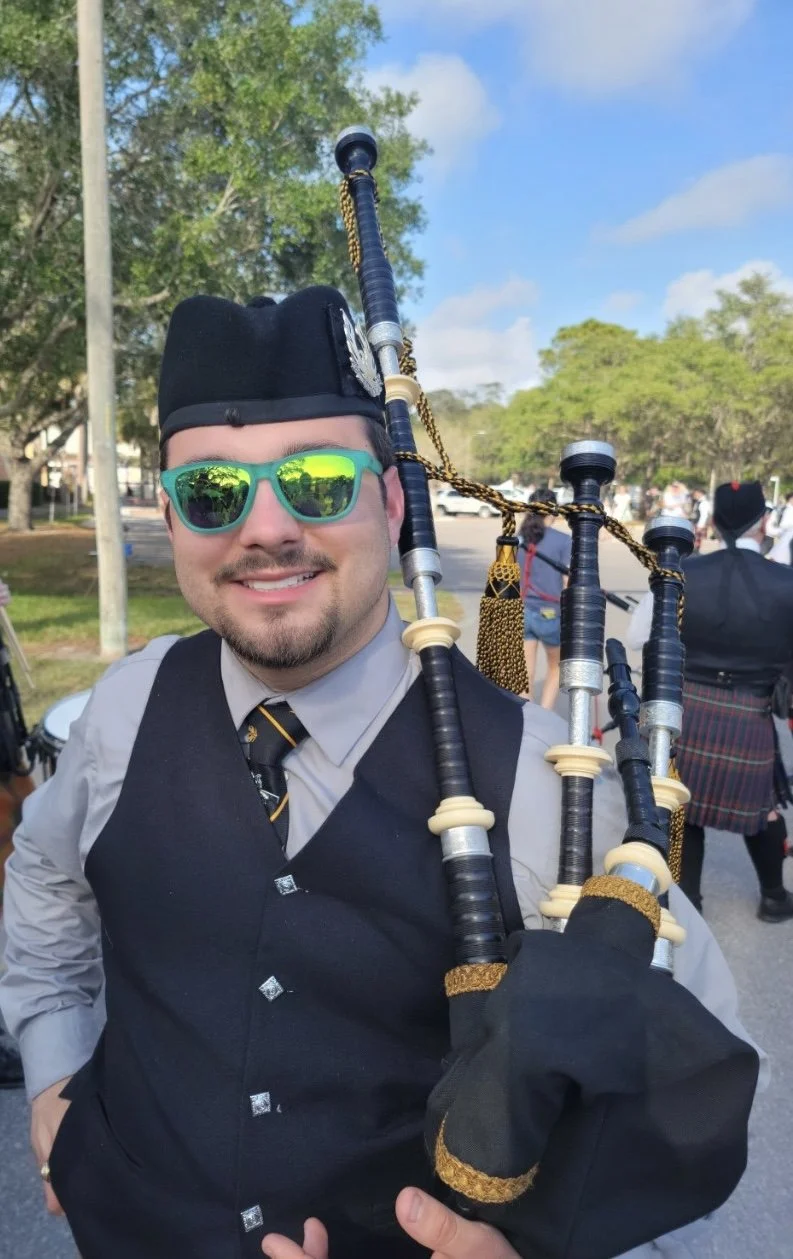 Whether you're seeking the beautiful melodies of the bagpipes or the driving rhythms of drums, I bring professionalism, passion, and over a decade of expertise to each event. My ultimate goal is to honor God through music, creating meaningful and memorable experiences for all.